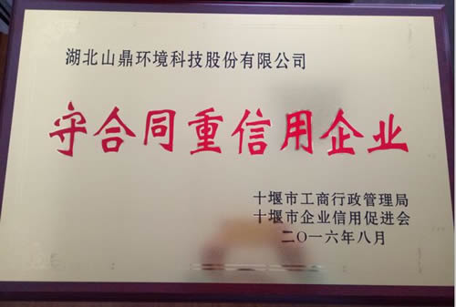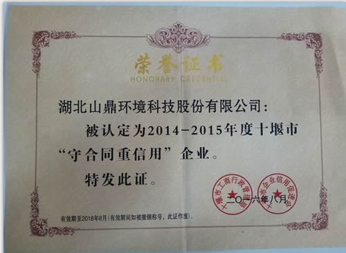 祝贺公司获评由十堰市工商行政管理局、十堰市企业信用促进会颁发的(2014—2015年度)“守合同重信用”企业荣誉证书。